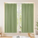 Eamochi遮光カーテンは丈145cm、幅70cmの小窓用カーテンで、断熱防寒効果があります。昼夜目隠し、アジャスターフック付きで冷気遮断。無地で洗える防音、省エネ、UVカット機能を兼ね備えたグリーンのシンプルデザインです。