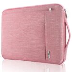 LANDICI 360°保護パソコンケースは、13-14インチのノートPCに対応し衝撃吸収・防水機能を備えています。MacBook Air/Pro、Surface Laptopなどに最適で、手提げ付きのピンク色デザインです。
