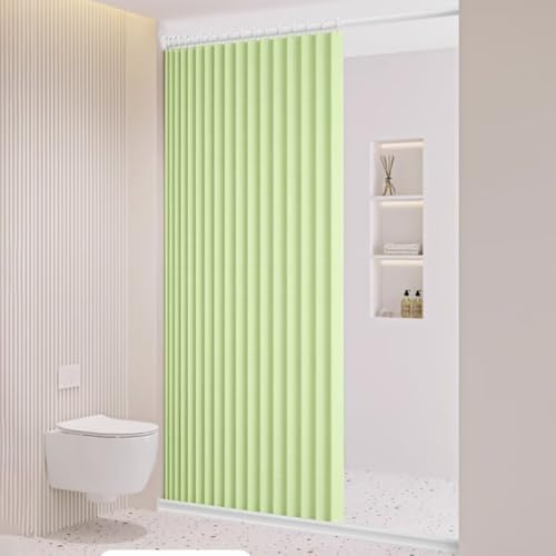 GMUMUのシャワーカーテンは、防水・防カビ仕様で、丈85cm・幅180cmの間仕切りカーテンです。リング付きで取付簡単、保温・断熱効果があり、防寒や省エネにも優れています。洗えるデザインで、グリーンのカラーが特徴です。