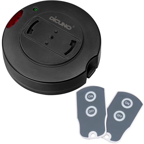 DiCUNO 照明リモコンスイッチは、引掛けシーリング用のペンダント型照明器具専用で、配線不要の丸型デザイン。黒色で、受信機1個と送信機2個がセットになっています。