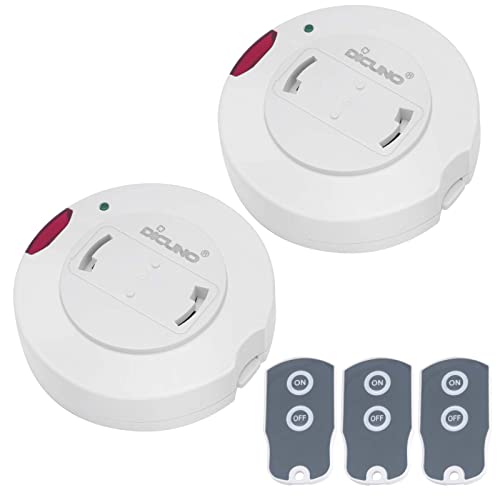 DiCUNOの照明リモコンスイッチは、引掛けシーリング用でペンダント型照明器具専用の配線不要な製品です。セットには受信機2個と送信機3個が含まれています。