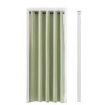 厚手のグリーンの間仕切りカーテン。断熱保温、遮光効果で冷気を遮断。サイズは幅120×丈230CMで、突っ張り棒付き。部屋をおしゃれに目隠しし、防音効果も。オーダーも可能。