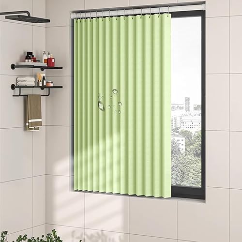 HIMENOのシャワーカーテンは丈95cm、防カビ・防水機能付きでプライバシーを守ります。ユニットバスに最適で、リング付きで簡単取り付け。洗濯も可能で、シンプルなグリーン色です。