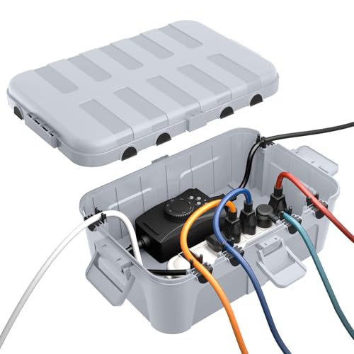 RESTMOの大型コンセントボックスは屋外用で、防水性能IP54を備えています。耐候性に優れ、ガーデンライトやタイマー、コンセントプラグに最適です。ライトグレーのデザインが特徴です。