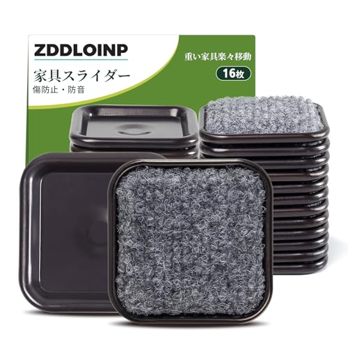 ZDDLOINPの家具スライダーは16枚入り、直径45mmで、重い家具の移動を簡単にします。フローリングを保護し、再利用可能で、ソファやベッドの足を傷から守り、防音効果もあります。