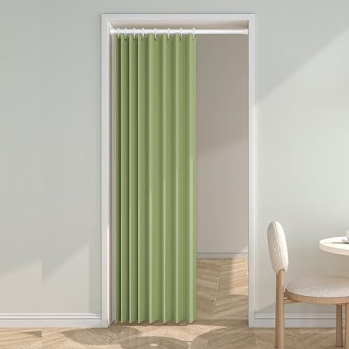 唐土工房の間仕切りカーテンは、丈180cm、幅150cmで、断熱・遮光機能を持つおしゃれな北欧デザイン。アコーディオンカーテンタイプで、防音、UVカット効果あり。洗えるリング付、タッセル付で使いやすい。