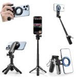 CloudValleyの4-in-1マルチ機能スマホ自撮り棒は、マグネット付きでコンパクト。iPhone・Android対応、充電可能なType-Cポート。写真や動画撮影、セルフィー、生放送に最適。日本語説明書付きの便利なアイテム。