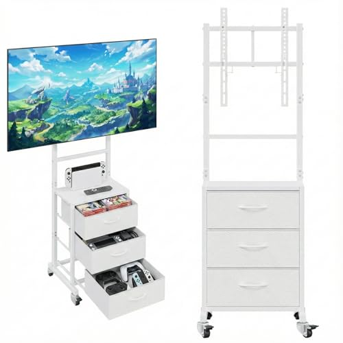 キャスター付きの壁寄せテレビスタンド。32~55インチ対応で、高さ調節可能。引き出し付きでゲーム機周りもスッキリ収納できます。耐荷重45kg、家庭用やビジネス展示用に最適。