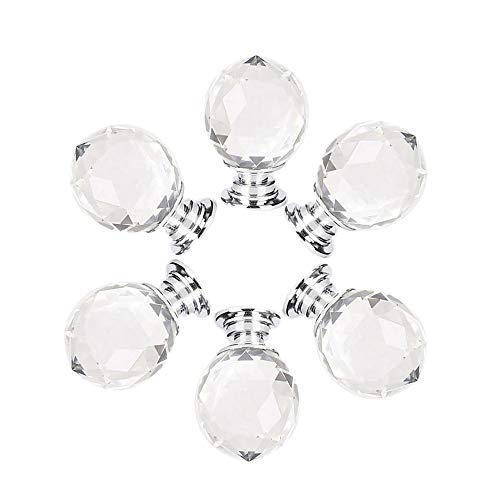 UULUの丸型透明引き出しノブは、6枚入りでクリスタルガラス製。タンスやキャビネットに最適な装飾用ハンドル。ネジは25mmと45mmが付属、銀色のキラキラデザインが魅力。