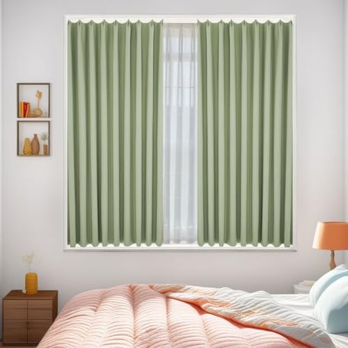 NOKKI カーテン 4枚セット (カーテン2枚 レース2枚) 日本製 フィンランドスタイル ルオント 1級 遮光 ドレープカーテン UVカット 遮光率99.99% 断熱 防炎 節電対策 昼夜目隠し 保温 おしゃれ 洗える 洗濯機対応 幅100cm×丈215cm アップルグリーン