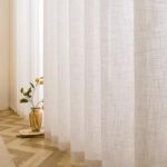 YKFNのレースカーテンは205cm丈、幅125cmの2枚組で、夜も透けにくい設計。UVカット、遮熱、目隠し機能もあり、洗濯機対応。ナチュラルなリネン調で子供部屋にも最適。