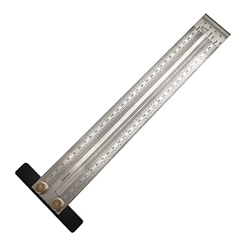 木工マーキング用の高精度T定規。ステンレス製で耐久性があり、直角定規としても使用可能。穴付きデザインで、300mmのスライディングゲージ機能を搭載。作業用に最適なライン引きツール。