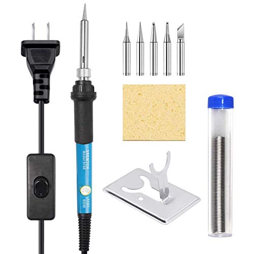 はんだごて 60W 温度調節可能な9-in-1セットです。多機能なツールと先端が付属しており、各種はんだ付け作業に最適です。温度調整機能で精密な作業も可能。
