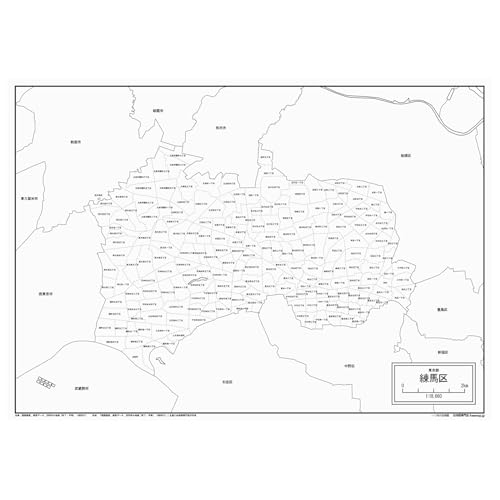 東京都練馬区の白地図は、A1サイズ(59.4×84.1cm)で2枚入りです。詳細な地名や地形を描いた地図で、学習や研究、プレゼンテーションに最適。白地図専門店の製品で、使い方も多様です。