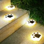 IP65防水の屋外ソーラーライト。かわいい猫の肉球デザインで、埋め込み/壁掛け可能。光センサー付きで自動点灯・消灯し、庭や公園に最適な4点セットです。