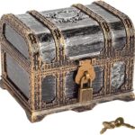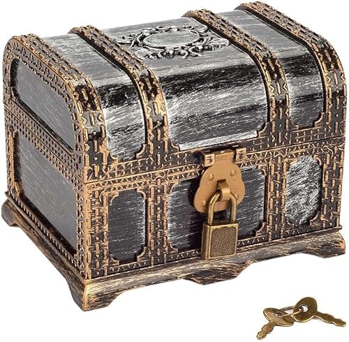 アンティーク風の木製宝箱。レトロなデザインで、インテリアや撮影小道具に最適。宝探し気分を楽しめるジュエリーボックス。鍵付きで小物入れやプレゼントにもおすすめ。