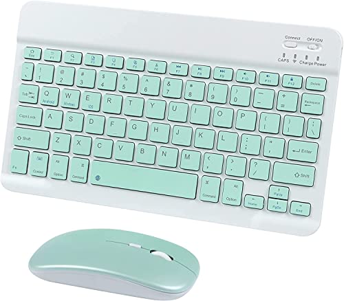 Bluetoothキーボードとマウスのセット。iPad、スマホ、タブレット、PCに対応。薄型でコンパクト、可愛いデザイン。充電式、Windows/Mac/iOS/Android対応、緑色。
