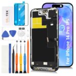 SRJTEKのiPhone 14 Pro用液晶パネルは、同様のノッチサイズとセンサー・ケーブル、イヤホンケーブルが付属しています。6.1インチのA2890、A2650、A2889、A2892モデルに対応した修理パーツで、工具も同梱されています。