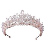 ダイヤモンドティアラ、ローズゴールド仕上げ、クリスタルビーズとハート型デザインの豪華なブライダルティアラ。大きなラインストーンで美しさを引き立て、ウェディングやページェントに最適なヘアアクセサリーです。