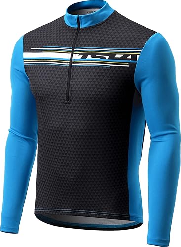 テスラのサイクルジャージは、メンズ用長袖ハーフジップで、UVカット機能や吸汗速乾性を備えています。通気性があり、超軽量なメッシュ素材で春秋のサイクリングやトレーニングに最適です。