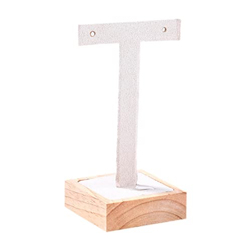 木製イヤリングディスプレイホルダー、T字型で吊り下げジュエリーに最適。ショールームや小売に対応。サイズは11.5x7cm、色はベージュで、おしゃれで機能的なアクセサリー収納に最適。