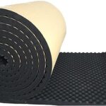 2mロール波型の防音材で厚さ25mmのブラック。裏面に粘着テープが付いており、カットして手軽に貼り付け可能。耐火性があり、特にドラムや部屋の防音に最適。吸音大面積の製品です。