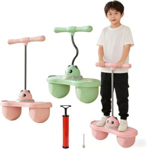 子供用 ホッピングボール 取っ手付き 二重エアバッグバランスボール 空気入れ 安全 高耐荷重 ピンク 小学生 こども 室内 室外 屋外 竹馬 運動 キッズ スポーツ スポーツトイ アクショントイ 跳ねる おもちゃ (ピンク+グリーン) [並行輸入品]