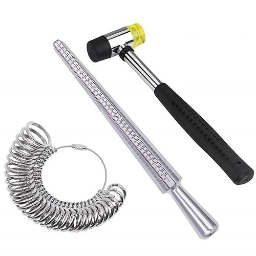 日本規格リングサイズ3点セットは、指輪サイズゲージ・リング棒・ハンマーを含むプロ仕様の補修工具です。指輪測定やサイズ調整に最適なジュエリー用の道具です。
