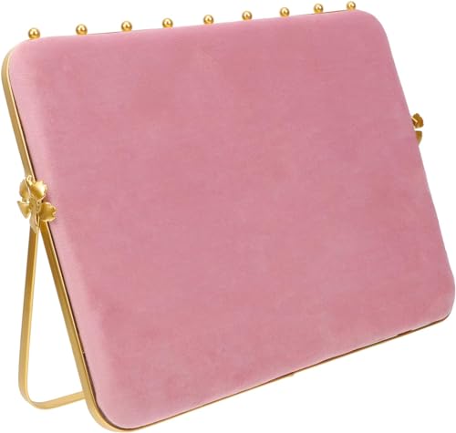 ジュエリーラックはモニタースタンド機能付きで、ネックレスやリングを美しく収納・展示できます。デスク周りをおしゃれに演出し、ピンクのスポンジ素材が優しい印象を与えます。