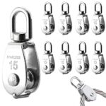 M15のステンレス製ロープ滑車8個セットは、スイベル式で回転可能。耐久性と耐荷重に優れ、室内外での貨物輸送やクライミング、建設工事に最適です。