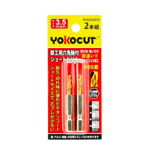 YOKOCUTの2.0mm鉄工ドリル2本組は、六角軸ショートタイプで、金属や鉄工、ステンレス向けに最適です。チタンコーティングにより耐久性が向上し、高効率な穴あけ作業を実現します。