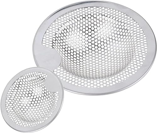 漢王実業の洗面台用ゴミ受けは、ステンレス製のパンチングデザインで、浅型かつ取っ手付きです。排水口の適用寸法はSサイズ3.5-4.5cm、Lサイズ7.6-10cmの2個セットです。キッチンや浴室、洗面所で使用可能です。
