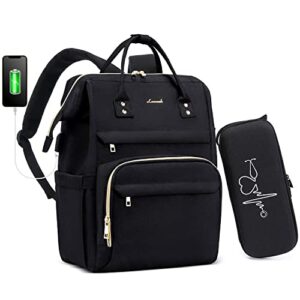 LOVEVOOK ナースバックパック ノートパソコン用バックパック レディース 聴診器ケース USB充電ポート付き 盗難防止 旅行用バックパック ブックバッグ 医師用バッグ 15.6インチのノートパソコンとノートブックに対応 ブラック