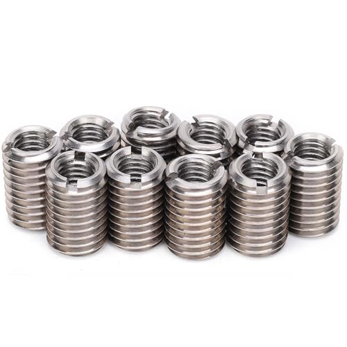 インサートナット 10個入り。ステンレス鋼製の一行溝タイプで、内径M6*1、外径M8*1.25、長さ15mm。ネジ変換アダプターとして、ネジ山補修や締付部材に最適。