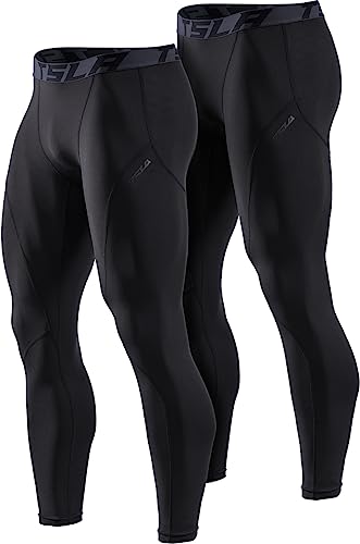 [テスラ] 裏起毛コンプレッションタイツ メンズ 2枚セット。伸縮性に優れ、保温・防寒効果あり。スポーツウェアとして最適なランニングやインナー、ロングスパッツに対応。