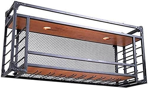 吊り下げ式のワイングラスホルダーとボトルラック。メタル製でおしゃれなデザイン。ホームバーやキッチンに最適です。耐久性があり、空間を有効活用できます。