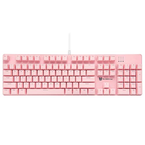 Merdia メカニカル式ゲーミングキーボード 全104キーボード US配列 有線 USB有線キーボード LEDバックライト付き (青軸-ピンク)