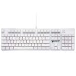 Merdiaのメカニカル式ゲーミングキーボードは、104キーのUS配列で、USB有線接続に対応。青軸仕様で、LEDバックライトが搭載されています。ホワイトデザインがスタイリッシュです。