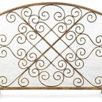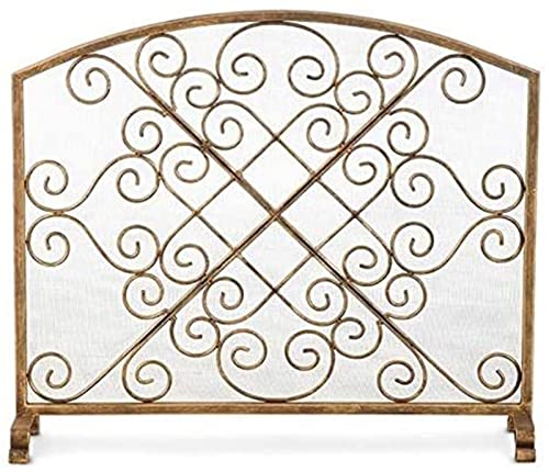 自立型ファイヤーガード、金属メッシュ付きの頑丈な錬鉄製フレームで、装飾的なスクロールデザイン。暖炉の火の粉を防ぎ、安全かつ美しいインテリアに。