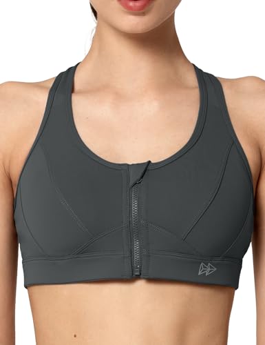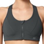 イベットの揺れないスポーツブラは、前開きデザインで着脱も簡単。フィットネスやランニングに最適なモスグレイのLサイズ。吸汗速乾素材で、しっかりサポートしながら快適さを提供します。