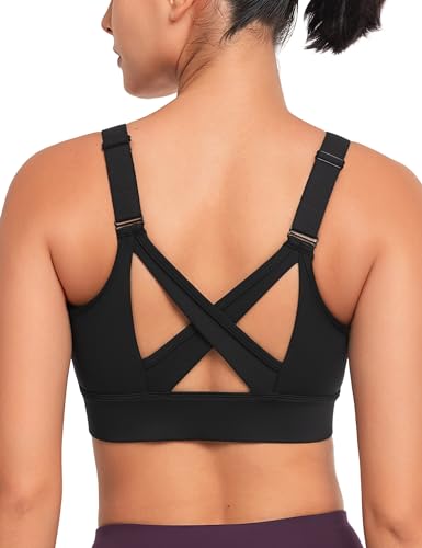 イベットのスポーツブラは揺れを抑え、大きいサイズも対応したハイサポートタイプ。前開きデザインで着脱が簡単。調整可能なクロスバックや一体型カップでトレーニング、ランニング、ジムに最適。M Plusサイズ、カラーはブラック。