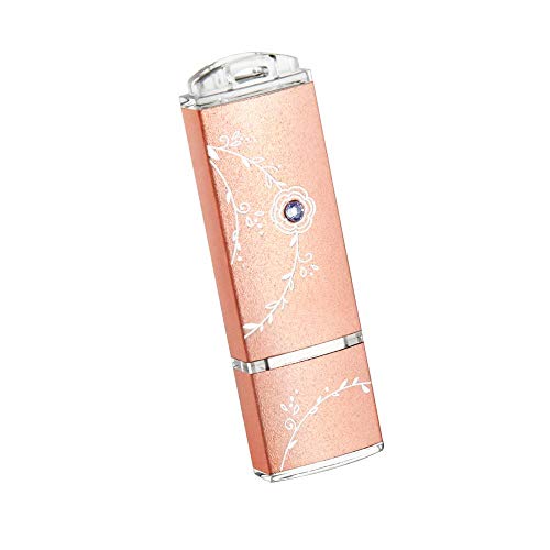 TCELL 256GB USB 3.0フラッシュドライブ。スワロフスキーエレメントクリスタル装飾、エレガントなローズゴールドデザイン。高速転送対応で、スタイリッシュかつ実用的。