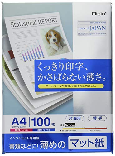 ナカバヤシのDigio2インクジェット用紙(薄手マット紙)はA4サイズで、100枚入りです。高品質の印刷が可能で、写真や文書作成に最適です。