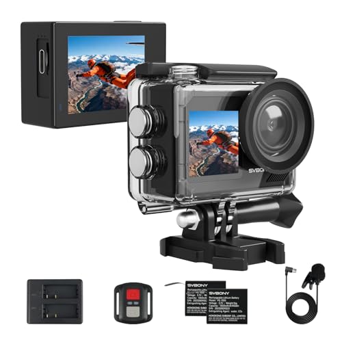 SVBONYアクションカメラは、62gの超小型軽量で4K30fps、5倍ズームや手ブレ補正機能を搭載。30m防水、ノイズキャンセリング、バッテリー2個付きで自転車/車用アクセサリーセットを含む。