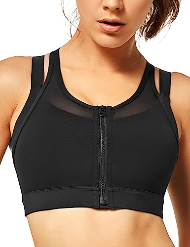 Yvetteハイサポートスポーツブラは、女性用ランニングに最適なノンワイヤー設計。前開きタイプで着脱が簡単、フィット感が良く揺れを抑える。サイズM(A-C)、カラーはブラック。