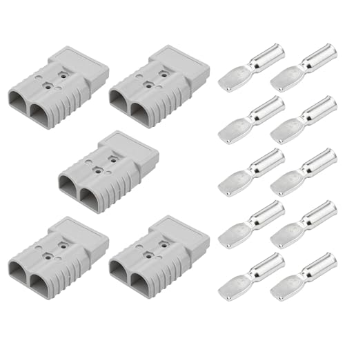 Leehitech 5点セット アンダーソンコネクター 50A 600V バッテリークイックコネクトディスコネクトコネクター 12V-36V バッテリー配線端子 6-12 AWGワイヤに適合 防水・防塵カバー付属,車、ボート、キャラバン、キャンパー用(グレー)の高価買取