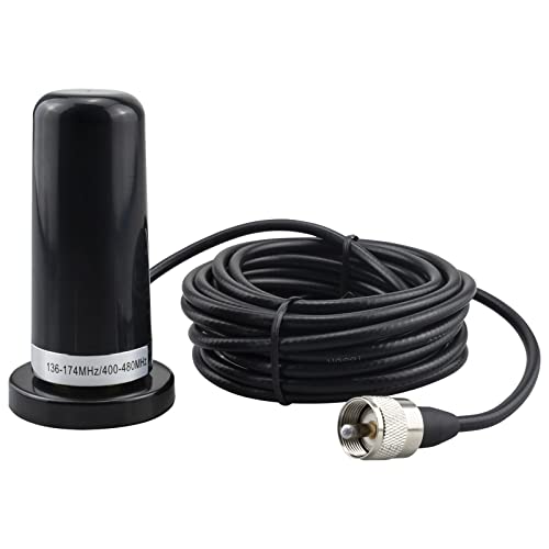 Lonlonty 3.5インチNMOデュアルバンドアンテナ。VHF(136-174MHz)とUHF(400-480MHz)対応。PL259オスコネクタ付き。磁気ベースとRG58/U同軸ケーブルでハムラジオに最適。