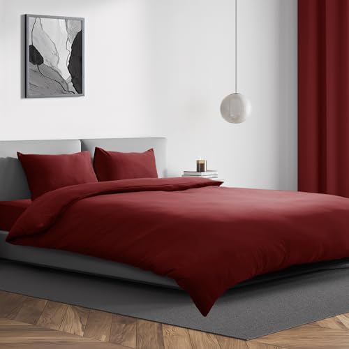 Deconovoの寝具カバーセットは、セミダブル用の4点セットで、レッドカラーが特徴です。通気性に優れ、掛ふとんカバー、ボックスシーツ、枕カバーが含まれ、丸洗い可能でお手入れ簡単です。
