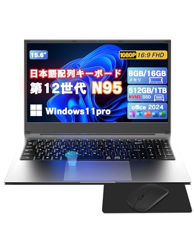 VETESAの15.6型ノートパソコンは、Intel第12世代N95プロセッサを搭載。解像度1920×1080のIPS液晶、8GB RAM、512GBストレージ。静音設計、WiFi5/BT5.0対応、日本語キーボード、ワイヤレスマウス付属。