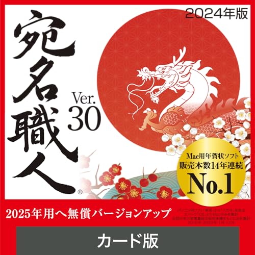 ソースネクストの【2024年版】宛名職人 Ver.30は、年賀状やハガキの宛名書き・印刷をサポート。最新の住所録機能を搭載し、Macにも対応しています。簡単操作で効率的に年賀状作成が可能です。